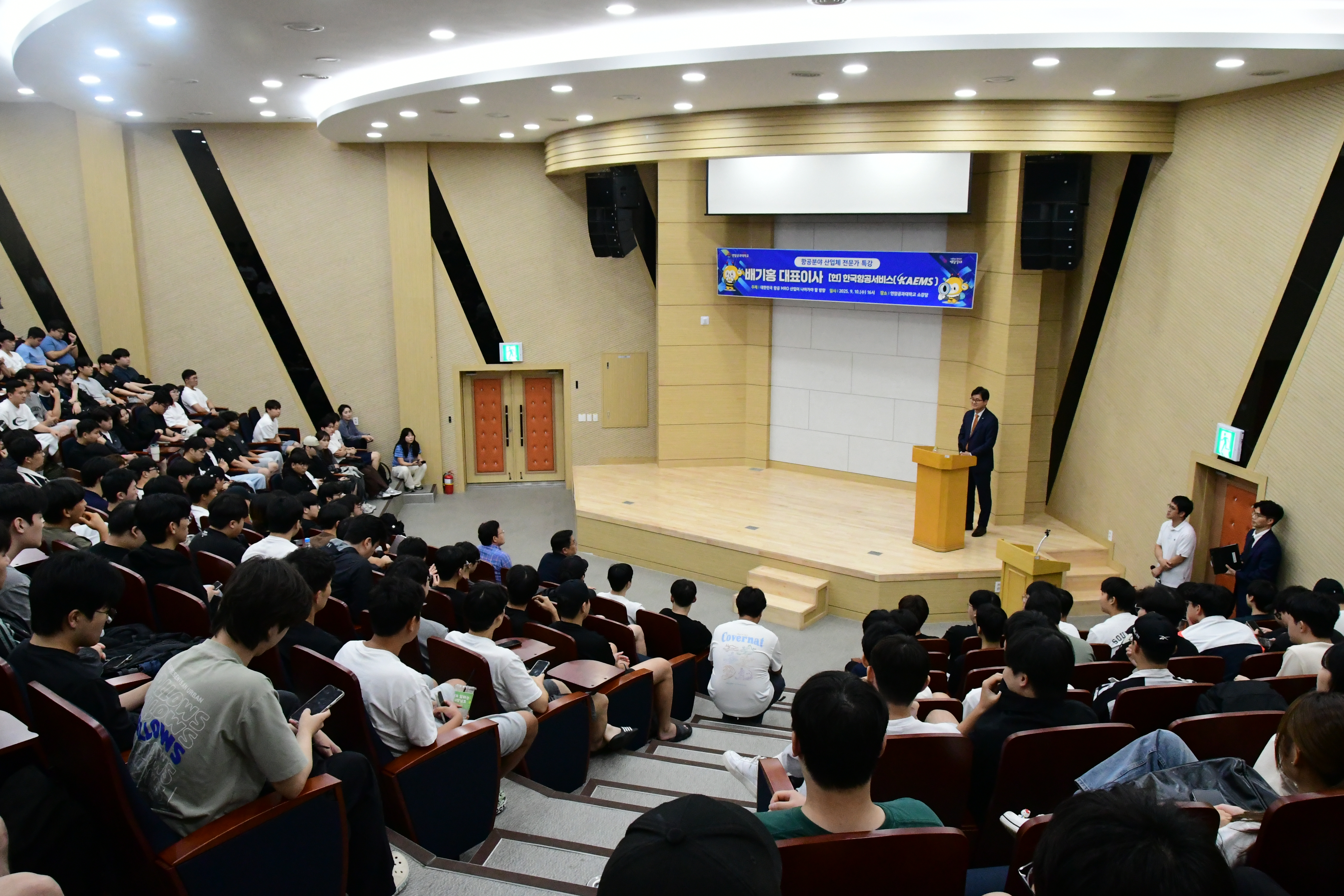 이어 오후 4시에는 연암공대 소강당에서 배기홍 대표의 특강이 열려 재학생 300여 명이 참석해 큰 관심을 보였다. 그는 「대한민국 항공MRO산업이 나아가야 할 방향」을 주제로 ▲항공산업의 특성과 국내 육성전략 ▲MRO산업 발전 방향 ▲기업과 대학 교육의 상생방안 등을 제시하며, 글로벌 항공산업의 흐름과 기업 운영 비전을 학생들에게 생생하게 전달했다.